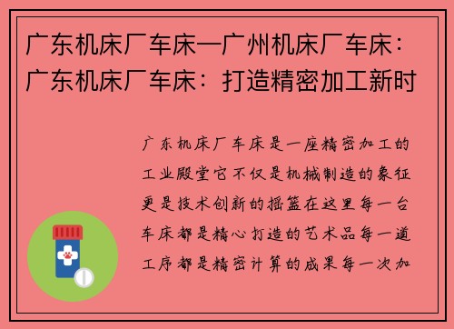 开车床是一项精密的机械加工技术,广泛应用于制造业领域。它能够对金属、塑料和其他材料进行高精度的加工,是现代工业中不可或缺的重要工具。本文将从多个方面详细介绍怎么开车床的技术要点和操作步骤,希望能够为读...